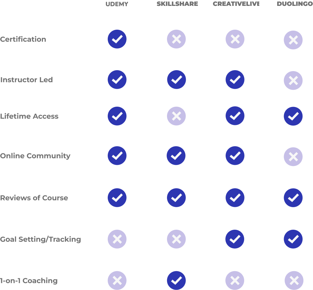 1. There is a lot of video content with instructors to lead but a lack of personalised, 1-on-1 coaching.